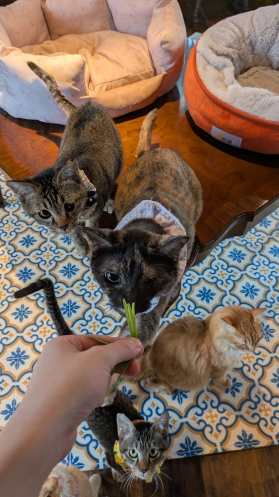 おもちゃで遊ぶのも大好きですが、子猫に譲ってあげていたり、優しい子でもあります。